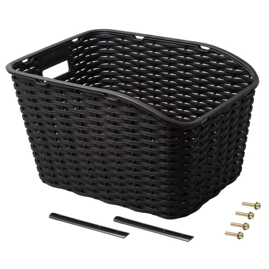 Praktikus és stílusos megoldás mindazoknak, akik extra tárolóhelyre vágynak kerékpározás közben. Ez a masszív, fonott hatású műanyag kosár egyszerre strapabíró és elegáns, fekete színével pedig bármilyen biciklihez remekül illeszkedik.