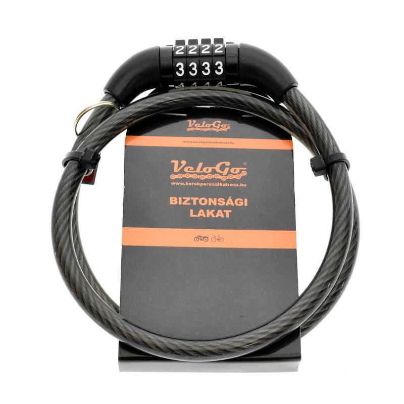 A VeloGo 4 számkódos fekete számzár (8x650mm) egy praktikus és biztonságos kerékpárzár, amely kulcs nélküli védelmet nyújt a biciklid számára.